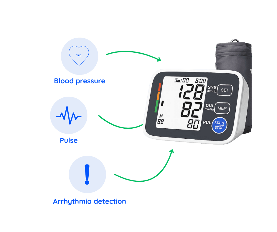No more notebooks or unnecessary visits. Omply lets you handle your health follow-ups easily and safely from home. Blood pressure monitoring kit package includes a stethoscope and a blood pressure monitor.