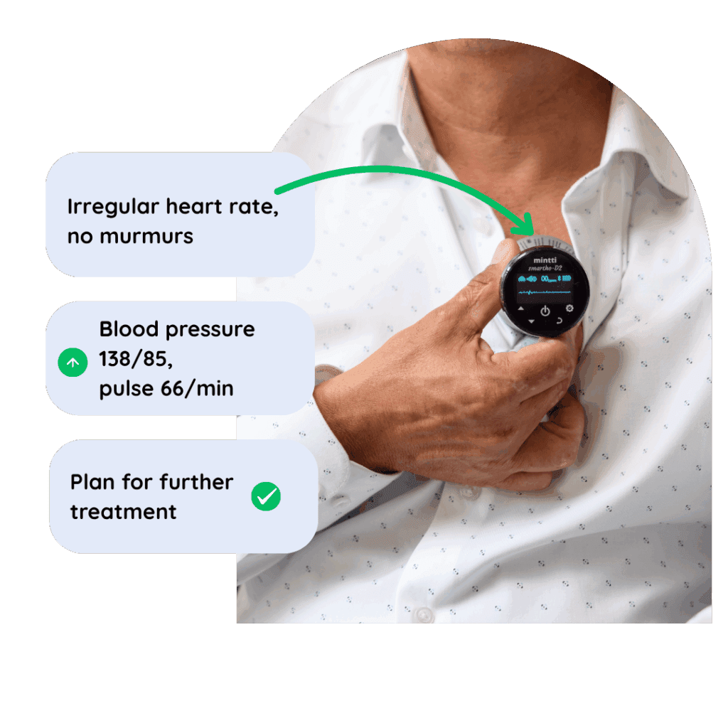 When you’re worried about your health, a doctor is just one tap away. With Care package for seniors, heart and lung examinations can be done at home — in real time and under a doctor’s guidance. Quick help and peace of mind for you and your loved ones.